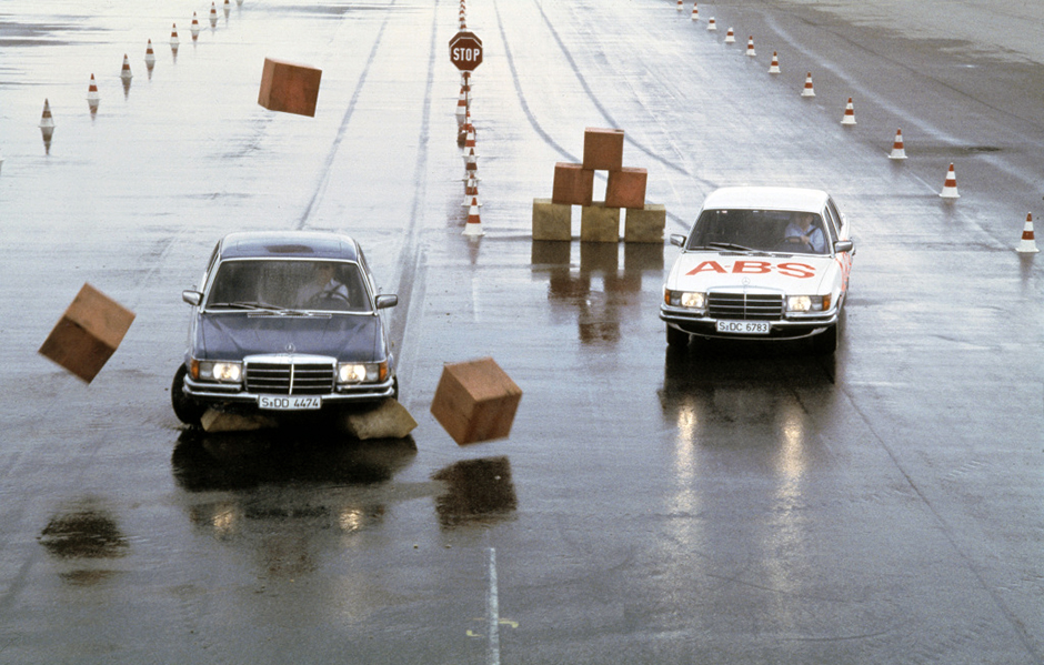 Mercedes brought the modern electronic ABS to production in 1978, preventing wheel lockup during hard braking to maintain steering control—now mandatory on vehicles globally.