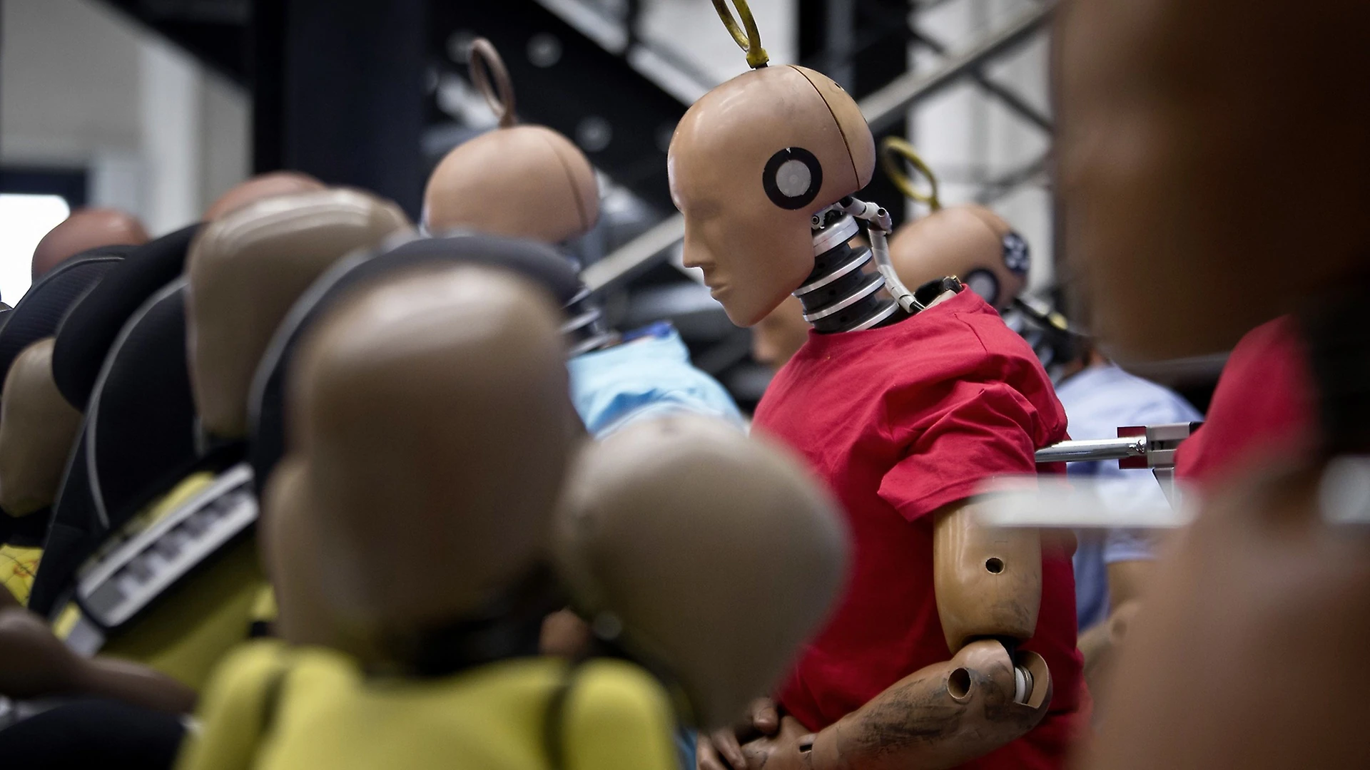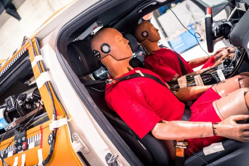 There are around 70 different configurations for cars and trucks, incl. frontal crash (with varying degrees of overlap), rear impact, side impact with movable barriers and lateral post impact, rollover test and vehicle-to-vehicle crash.